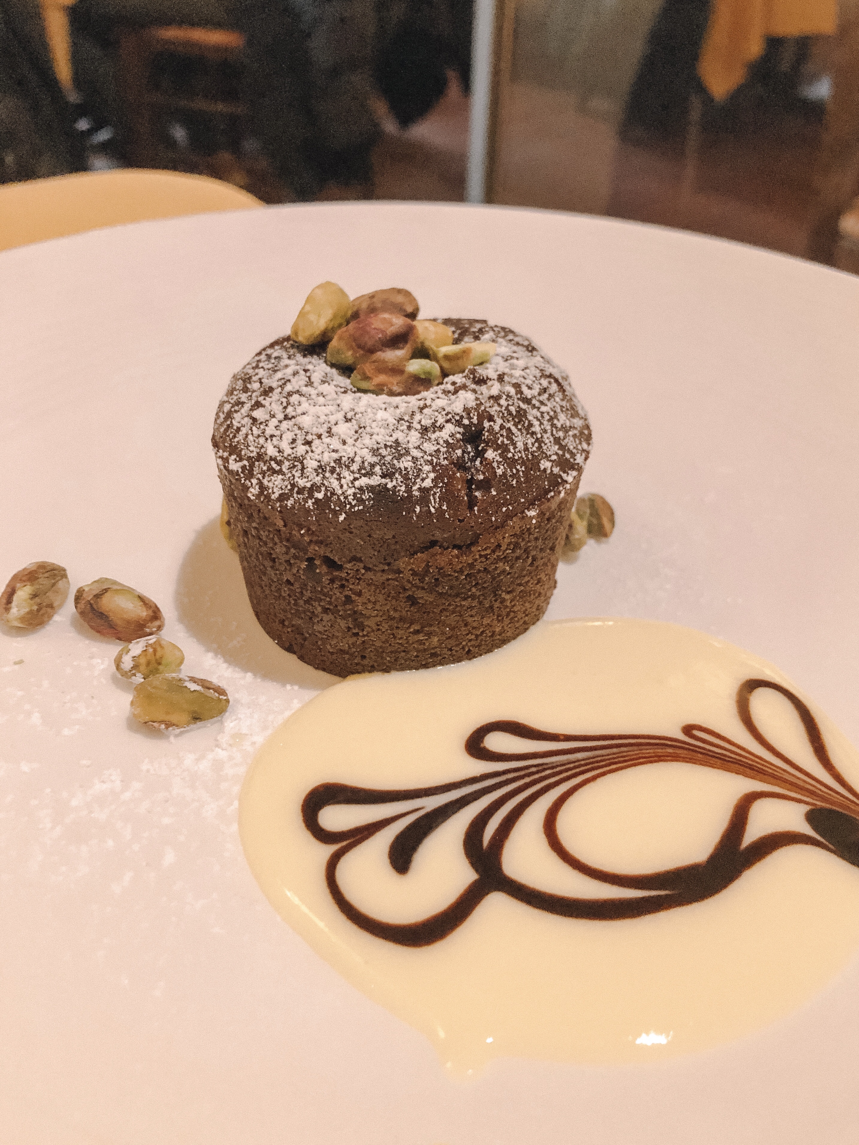 Non potevamo non concludere il pranzo con un dolcetto: sformatino al cioccolato al cuore caldo di crema di pistacchio di Bronte.
